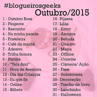 Meu primeiro desafio fotográfico foi junto com a galera dos blogueiros geek. O desafio consistia em tirar uma foto por dia com o tema pedido e postar no instagram. Fiz do mês de Outubro. Tentei tirar todas as fotos e em algumas que saíram atrasadas juntos dois temas seguidos numa mesma foto. Haha Foi bem legal de fazer e da para exercita bem a criatividade na hora de fazer as fotos. Aqui está a lista que deveríamos seguir:
